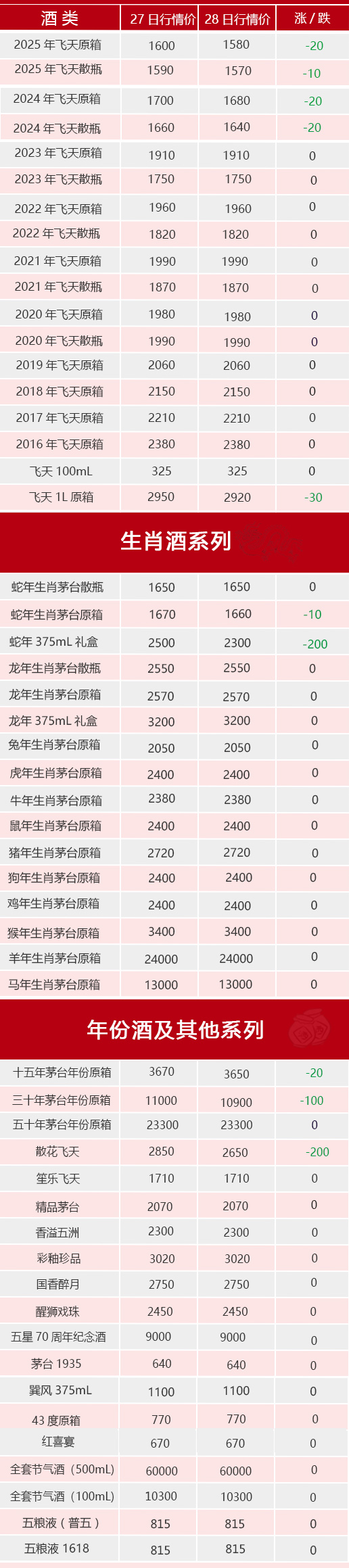繼續(xù)下跌。11月28日茅臺行情價(jià)。價(jià)格下行的影響
