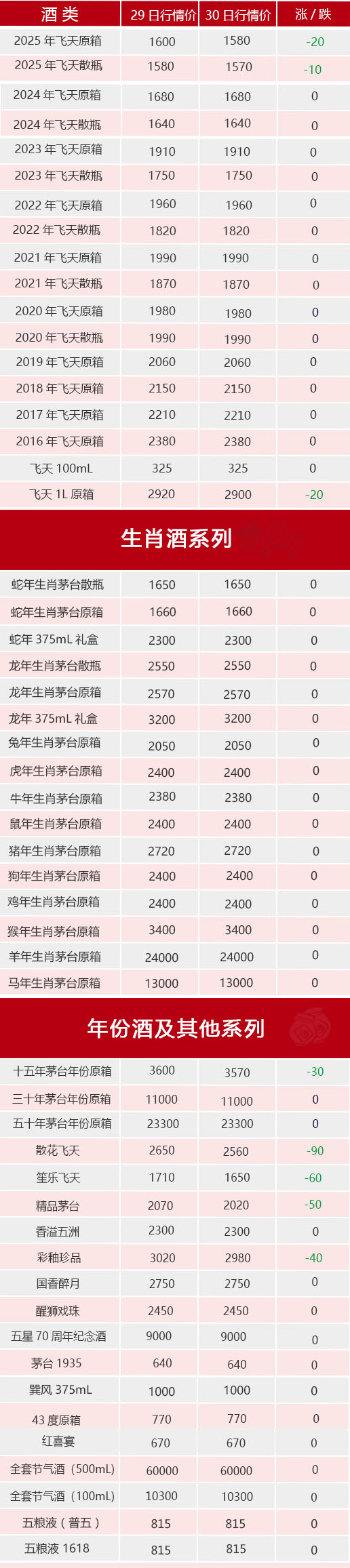 全線下跌!11月30日茅臺(tái)行情價(jià)。王莉談投放節(jié)奏和稀缺性