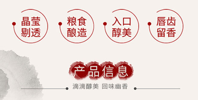 產(chǎn)品特點:清香醇正,諸味協(xié)調(diào),醇甜柔和,余味爽凈,甘潤爽口