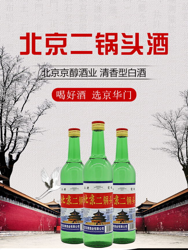 北京京醇酒業(yè)有限公司始建于一九八一年,是由千年歷史的老燒鍋酒發(fā)展而來。配以先進(jìn)科學(xué)技術(shù)精釀而成的京華門牌二鍋頭系列白酒,是清香型白酒的典型代表。