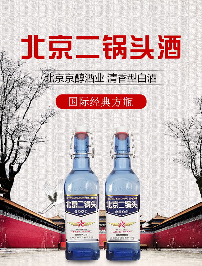 【產(chǎn)品名稱(chēng)】北京二鍋頭酒國(guó)際經(jīng)典方瓶清香型白酒【42°500ml】
