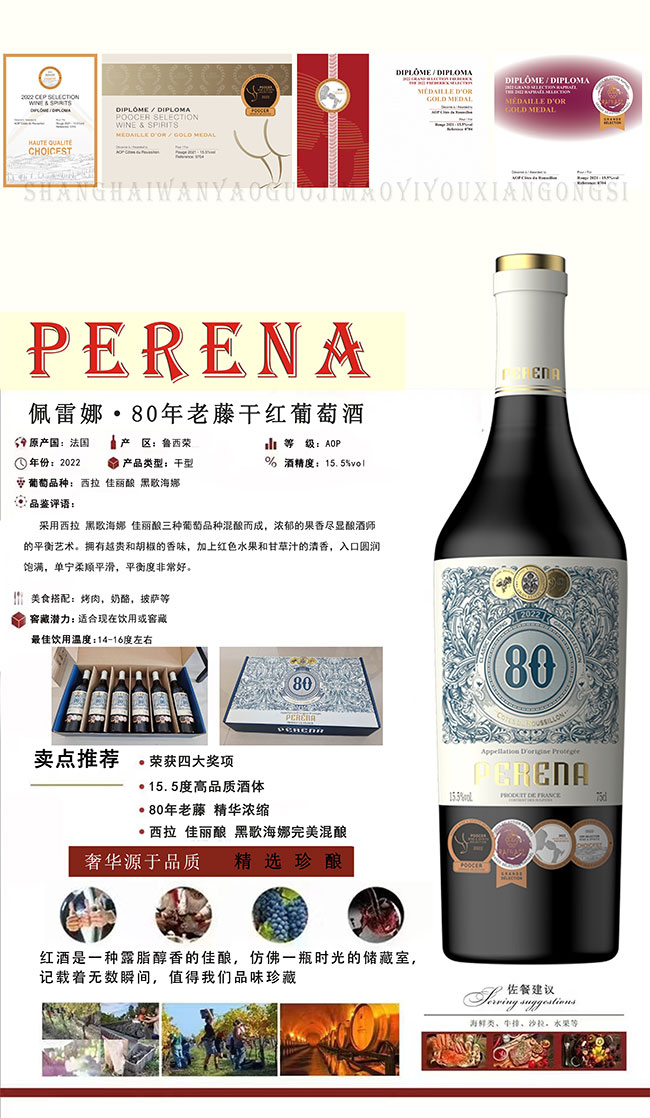公司主要經(jīng)營有法國、澳大利亞、西班牙、意大利等幾十個國家知名葡萄酒產(chǎn)區(qū)的紅酒。所有產(chǎn)品均為原瓶原裝進口。諸如法國超級波爾多、梅多克產(chǎn)區(qū)、貝爾熱拉克產(chǎn)區(qū)、尼姆產(chǎn)區(qū)、朗格多克、格里尼昂.意大利卡帕尼亞IGP和法國干邑產(chǎn)區(qū)的白蘭地XO等。
