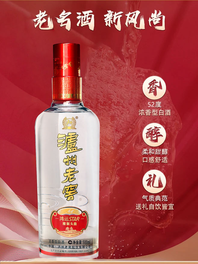 品名:瀘 州老窖鴻運(yùn)starA6 濃香型【52度500mL】