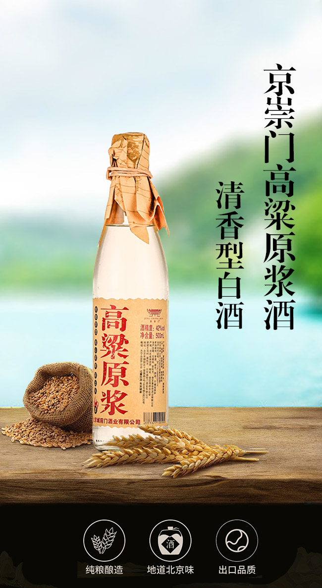 產(chǎn)品名:京崇門高粱原漿酒清香型白酒【42°500ml】
