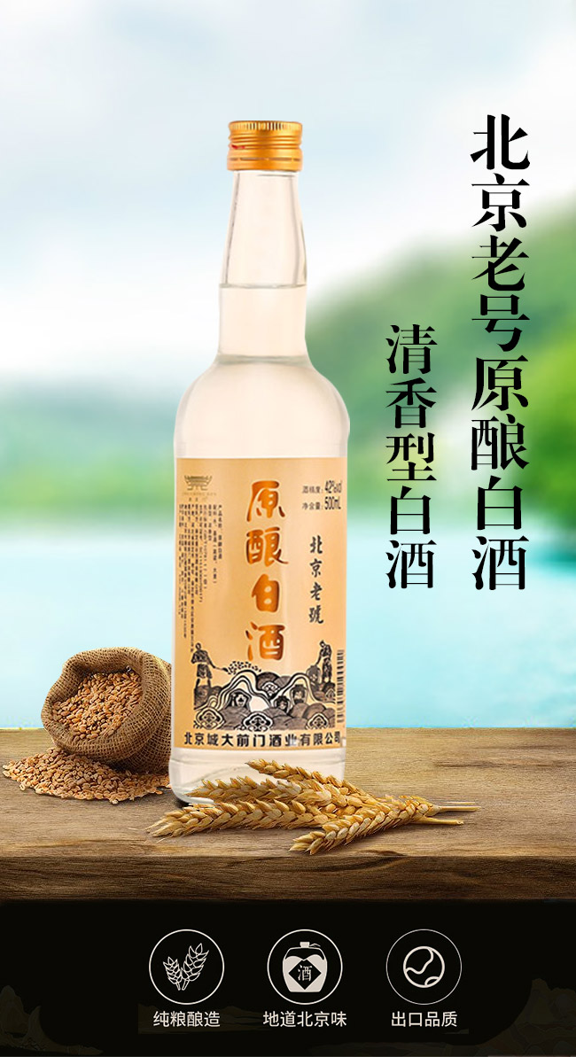 產(chǎn)品名:京崇門(mén) 北京老號(hào) 原釀白酒 清香型白酒【42°500ml】