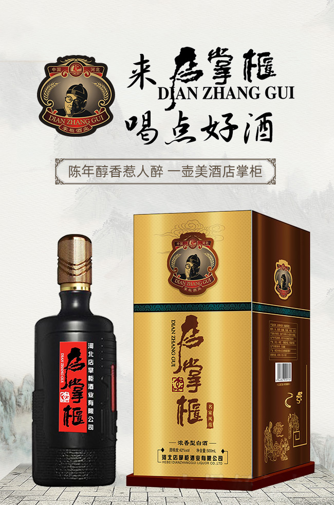 河北店掌柜酒業(yè)有限公司,位于歷史文化名城——保定;店掌柜酒業(yè)是近年發(fā)展起來的明星企業(yè),資產(chǎn)總值2800多萬元,占地面積26000㎡,建筑面積6800㎡、員工300多人、儲酒容量1000多噸。全自動生產(chǎn)線3條,發(fā)酵、釀造、勾兌技術(shù)和質(zhì)量控制、檢測手段都具備了國內(nèi)先進水平,是北方初具規(guī)模的中型企業(yè)。本公司在日趨激洌的市場竟爭中,企業(yè)始終堅持“以質(zhì)量求生存,靠科技求發(fā)展”的治廠方針和戰(zhàn)略,以“店掌柜”商標為龍頭系列產(chǎn)品。以高粱為主要原料配以大麥、小麥中溫曲為糖化發(fā)酵,采用傳統(tǒng)工藝低溫發(fā)酵,分級儲存,精心勾兌而成。理化指標和衛(wèi)生指標均符合國家頒布的蒸餾酒優(yōu)級標準。酒質(zhì)清亮透明,窖香濃郁、綿甜醇和,酒體濃厚、余香悠長。產(chǎn)品暢銷江蘇、河北、湖南、山東、廣東、河南、北京及周邊市縣。深受廣大銷費都好評。