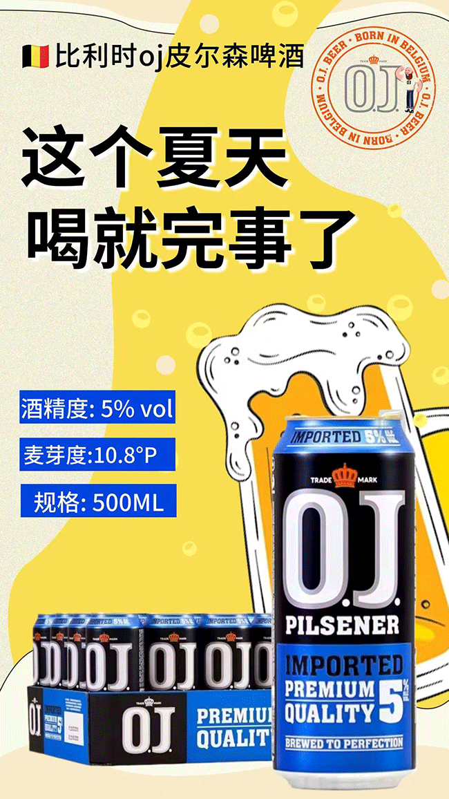 O.J.品牌成立于 2014 年,O.J.啤酒生產(chǎn)工廠位于比利時(shí)東部,與荷蘭交界,成立之初就是為消費(fèi)者提供創(chuàng)新型啤酒飲料產(chǎn)品。該酒廠生產(chǎn)技術(shù)處于行業(yè)領(lǐng)導(dǎo)角色且走在創(chuàng)新的前沿,可以提供酒精度從5度到20度全系列啤酒的品牌公司。