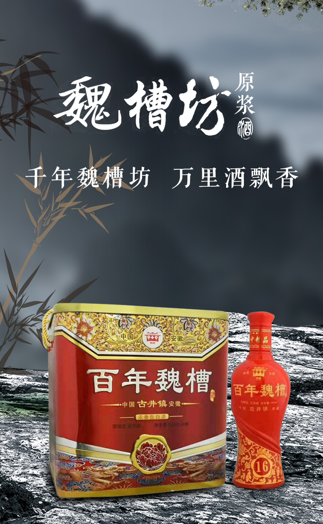 安徽魏槽坊酒業(yè)有限責(zé)任公司座落在華夏酒城安徽白酒之鄉(xiāng)——亳州市古井鎮(zhèn)。地處大京九鐵路沿線,自古以來(lái),人杰地靈、物華天寶、資源豐富。公司釀造的白酒是通過“擇層取醅”、“擇時(shí)摘酒”等傳統(tǒng)技術(shù),得到精華的原漿美酒,再放入地下酒庫(kù)經(jīng)陶壇洞藏一定年限,使其自然老熟。