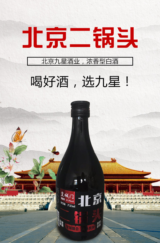 北京九星酒業(yè)有限公司是一家集產(chǎn)品研發(fā),生產(chǎn)銷售為一體的現(xiàn)代化白酒規(guī)模企業(yè)。目前開發(fā)的主要是皇城門系列白酒產(chǎn)品。是以優(yōu)質(zhì)高粱為主要原料,用大麥、小麥、豌豆制成大曲,輔多種微生物為糖化酵劑,再經(jīng)過長期發(fā)酵,緩慢蒸餾,取之精華,經(jīng)多年陳貯后,精心勾兌而成。以“清香幽雅,醇厚綿甜,尾昧爽凈”的獨(dú)特風(fēng)格,深受各界朋友的青睞。