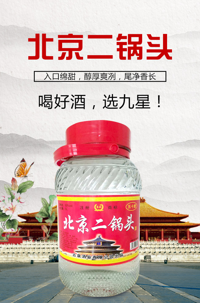 產(chǎn)品名:京恭北京二鍋頭50°5L