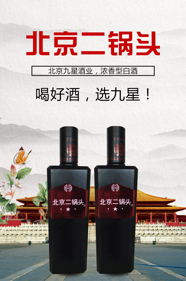 北京九星酒業(yè)有限公司是一家集產(chǎn)品研發(fā),生產(chǎn)銷售為一體的現(xiàn)代化白酒規(guī)模企業(yè)。目前開發(fā)的主要是皇城門系列白酒產(chǎn)品。是以優(yōu)質(zhì)高粱為主要原料,用大麥、小麥、豌豆制成大曲,輔多種微生物為糖化酵劑,再經(jīng)過長期發(fā)酵,緩慢蒸餾,取之精華,經(jīng)多年陳貯后,精心勾兌而成。以“清香幽雅,醇厚綿甜,尾昧爽凈”的獨特風(fēng)格,深受各界朋友的青睞。