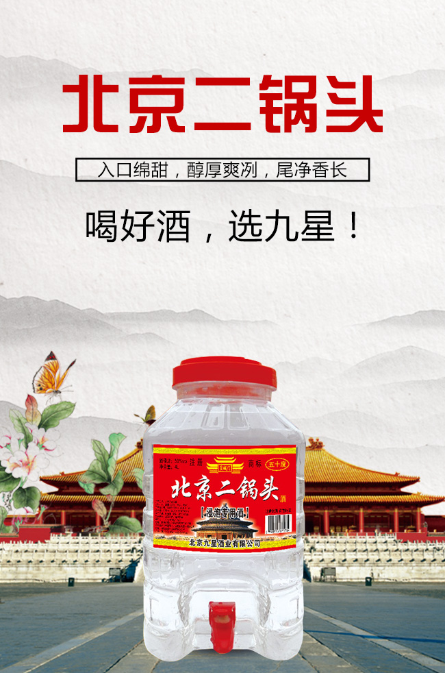 產(chǎn)品名:皇城門北京二鍋頭酒56°4L(浸泡用酒)