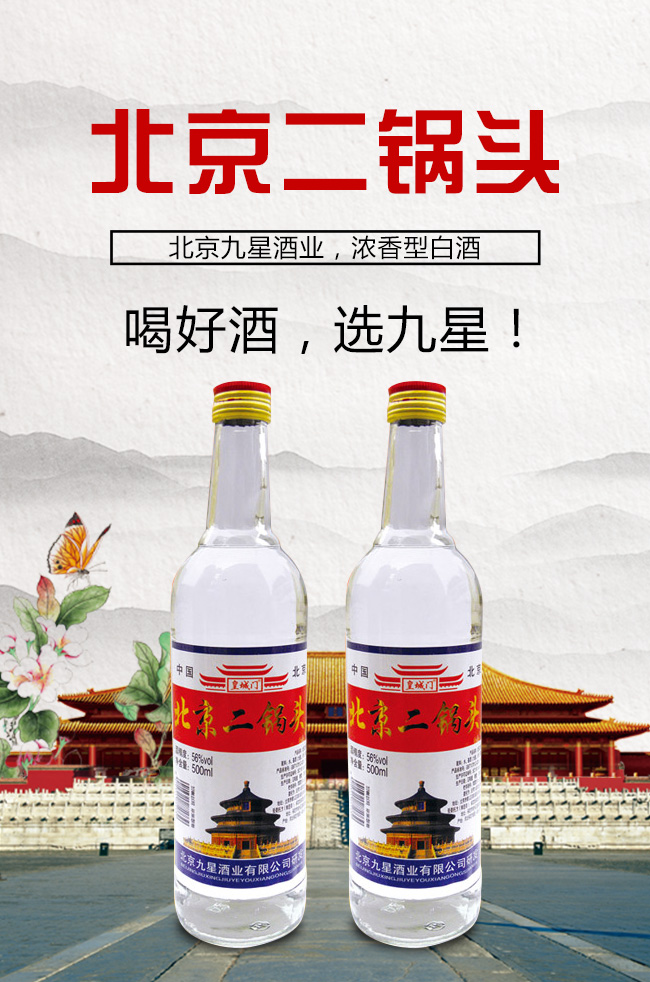 北京九星酒業(yè)有限公司是一家集產(chǎn)品研發(fā),生產(chǎn)銷售為一體的現(xiàn)代化白酒規(guī)模企業(yè)。目前開發(fā)的主要是皇城門系列白酒產(chǎn)品。是以優(yōu)質(zhì)高粱為主要原料,用大麥、小麥、豌豆制成大曲,輔多種微生物為糖化酵劑,再經(jīng)過長期發(fā)酵,緩慢蒸餾,取之精華,經(jīng)多年陳貯后,精心勾兌而成。以“清香幽雅,醇厚綿甜,尾昧爽凈”的獨特風(fēng)格,深受各界朋友的青睞。
