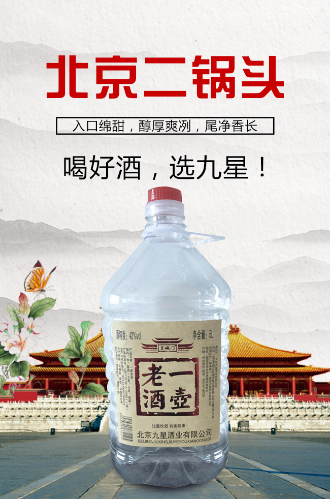北京九星酒業(yè)有限公司是一家集產(chǎn)品研發(fā),生產(chǎn)銷(xiāo)售為一體的現(xiàn)代化白酒規(guī)模企業(yè)。目前開(kāi)發(fā)的主要是皇城門(mén)系列白酒產(chǎn)品。是以?xún)?yōu)質(zhì)高粱為主要原料,用大麥、小麥、豌豆制成大曲,輔多種微生物為糖化酵劑,再經(jīng)過(guò)長(zhǎng)期發(fā)酵,緩慢蒸餾,取之精華,經(jīng)多年陳貯后,精心勾兌而成。以“清香幽雅,醇厚綿甜,尾昧爽凈”的獨(dú)特風(fēng)格,深受各界朋友的青睞。