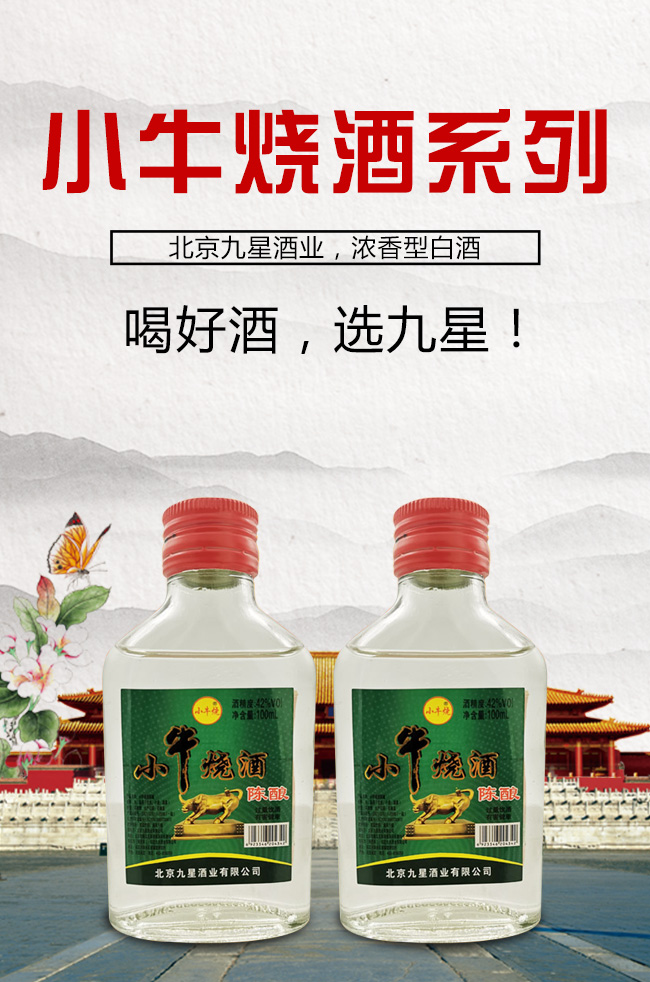 產(chǎn)品名:小牛燒酒陳釀42°100ml濃香型白酒綠標(biāo)
