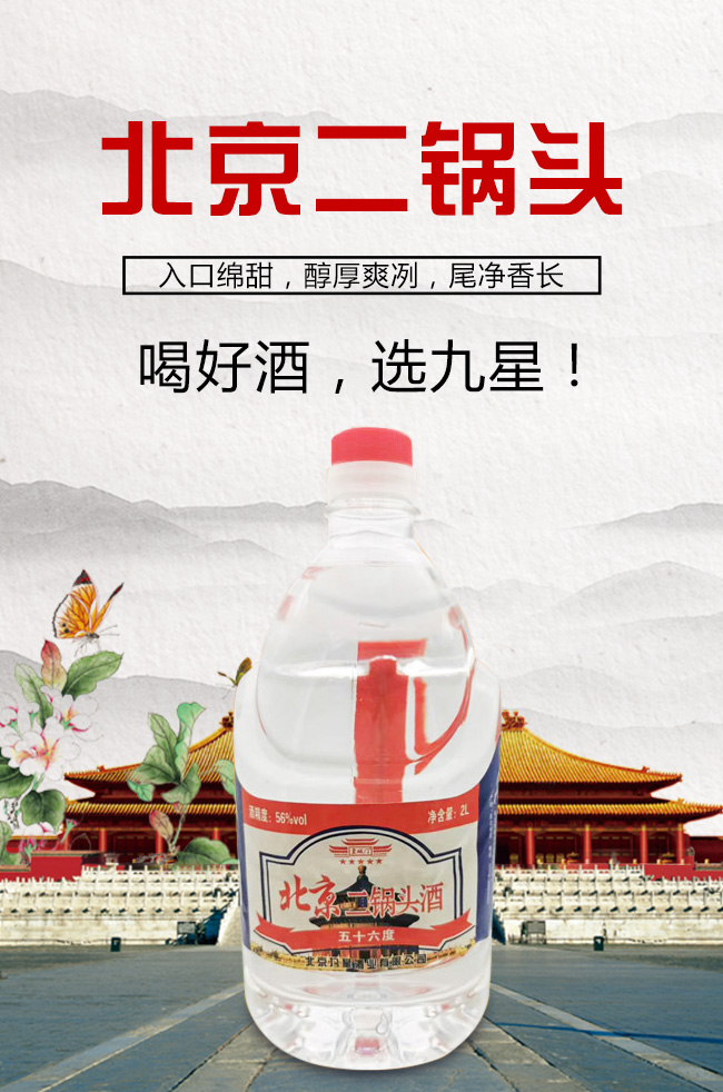皇城門北京二鍋頭酒56°2L清香型白酒