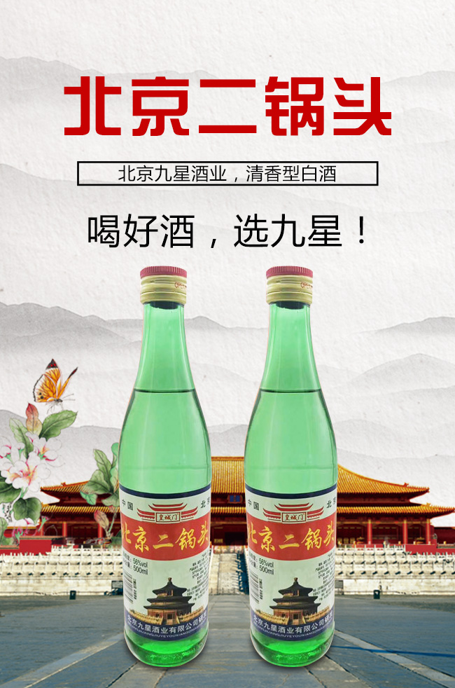 北京九星酒業(yè)有限公司是一家集產(chǎn)品研發(fā),生產(chǎn)銷售為一體的現(xiàn)代化白酒規(guī)模企業(yè)。目前開發(fā)的主要是皇城門系列白酒產(chǎn)品。是以優(yōu)質(zhì)高粱為主要原料,用大麥、小麥、豌豆制成大曲,輔多種微生物為糖化酵劑,再經(jīng)過長期發(fā)酵,緩慢蒸餾,取之精華,經(jīng)多年陳貯后,精心勾兌而成。以“清香幽雅,醇厚綿甜,尾昧爽凈”的獨特風格,深受各界朋友的青睞。