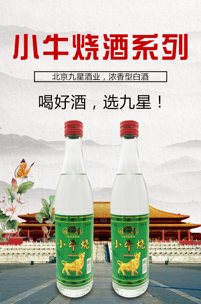 北京九星酒業(yè)有限公司是一家集產(chǎn)品研發(fā),生產(chǎn)銷售為一體的現(xiàn)代化白酒規(guī)模企業(yè)。目前開發(fā)的主要是皇城門系列白酒產(chǎn)品。是以優(yōu)質(zhì)高粱為主要原料,用大麥、小麥、豌豆制成大曲,輔多種微生物為糖化酵劑,再經(jīng)過長期發(fā)酵,緩慢蒸餾,取之精華,經(jīng)多年陳貯后,精心勾兌而成。以“清香幽雅,醇厚綿甜,尾昧爽凈”的獨特風(fēng)格,深受各界朋友的青睞。
