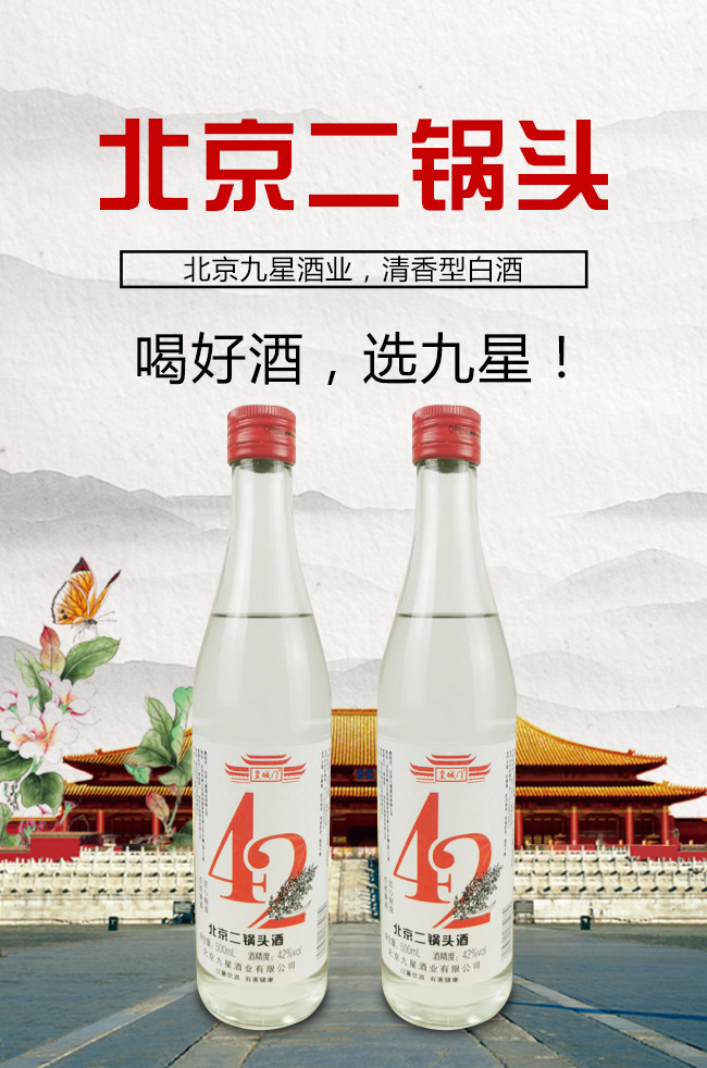 北京九星酒業(yè)有限公司是一家集產品研發(fā),生產銷售為一體的現(xiàn)代化白酒規(guī)模企業(yè)。目前開發(fā)的主要是皇城門系列白酒產品。是以優(yōu)質高粱為主要原料,用大麥、小麥、豌豆制成大曲,輔多種微生物為糖化酵劑,再經過長期發(fā)酵,緩慢蒸餾,取之精華,經多年陳貯后,精心勾兌而成。以“清香幽雅,醇厚綿甜,尾昧爽凈”的獨特風格,深受各界朋友的青睞。