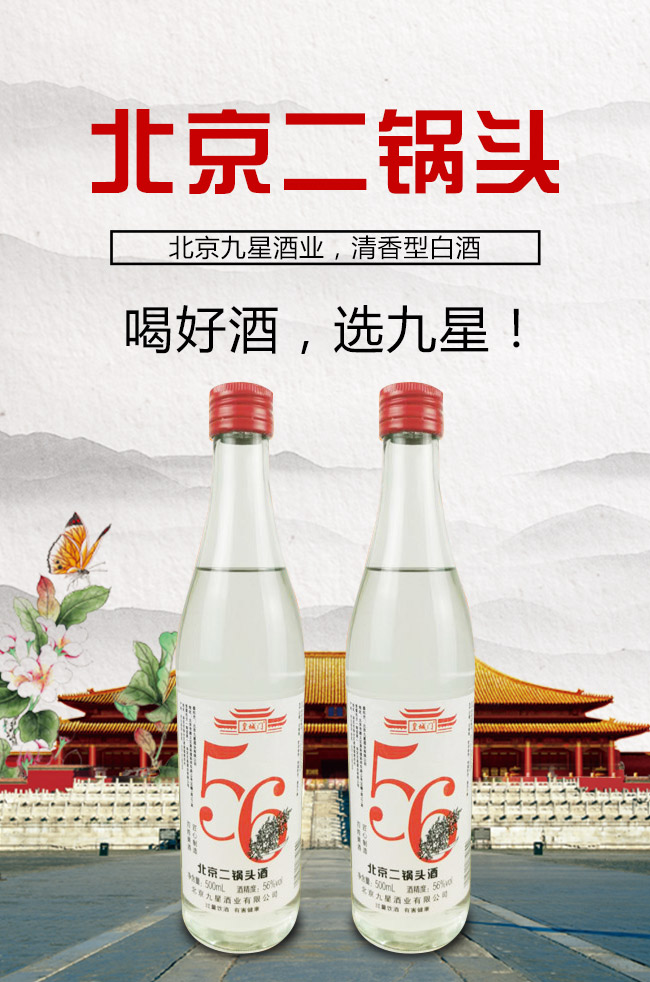 產(chǎn)品名:皇城門北京二鍋頭酒清香型白酒【56°500ml】