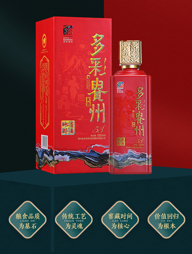 多彩貴州酒產(chǎn)于貴州茅臺(tái)鎮(zhèn),以本地優(yōu)質(zhì)糯高粱、小麥、水為原料,利用得天獨(dú)厚的自然微生物環(huán)境,遵循具有悠久歷史的傳統(tǒng)工藝精釀而成,并由大師級(jí)團(tuán)隊(duì)精選、勾調(diào)、品評(píng),認(rèn)定;融合了“釀造、文化、品牌、自信”等多彩元素。