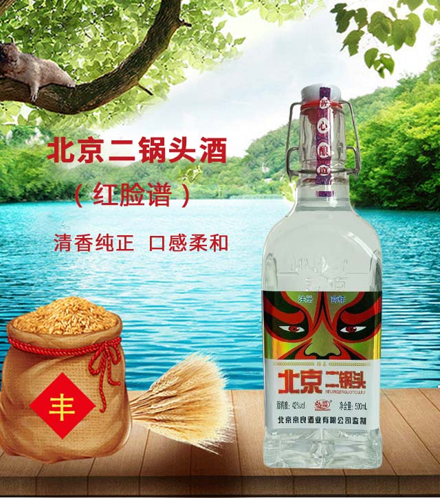 產(chǎn)品名:京良北京二鍋頭酒(紅臉譜) 清香型白酒【42° 500ml】