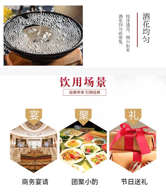 適飲場(chǎng)合:商務(wù)宴會(huì)、團(tuán)圓小酌、婚慶宴席、節(jié)日送禮、收藏等