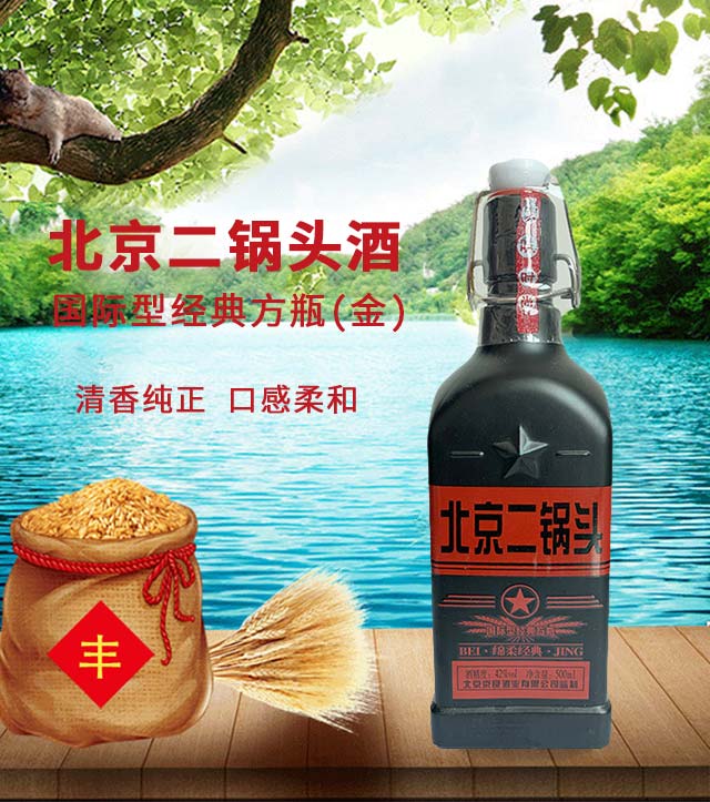 產(chǎn)品名:京良北京二鍋頭酒國(guó)際型經(jīng)典方瓶(黑) 清香型白酒【42° 500ml】