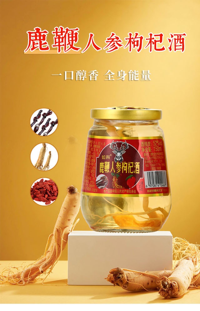 品名:如科鹿鞭人參枸杞酒【42度52度 150ml】