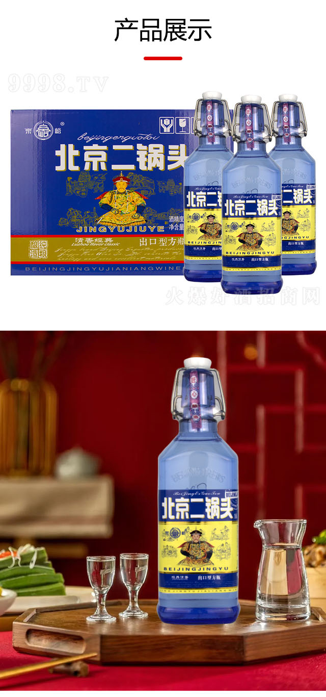品名:京峪北京二鍋頭酒出口型方瓶·卡扣藍(lán) 清香型【42° 500ml×12瓶】