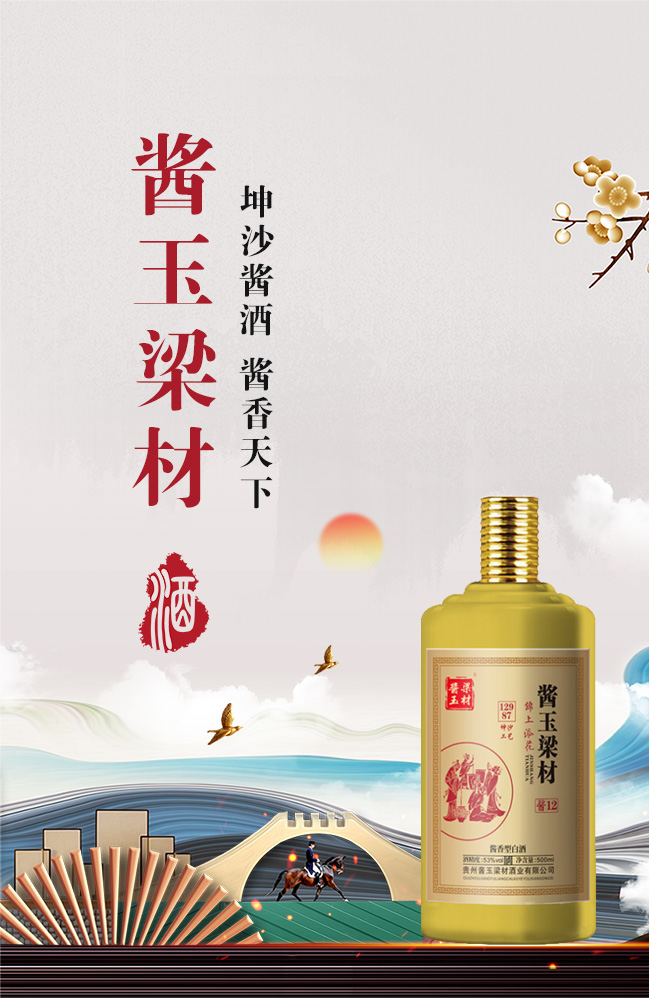 醬玉梁材酒產(chǎn)于貴州省仁懷市茅臺(tái)鎮(zhèn),以本地優(yōu)質(zhì)紅櫻子糯高粱、小麥、水為原料,采用經(jīng)過紅朱砂土壤的深層過濾,赤水河的優(yōu)質(zhì)水。茅臺(tái)鎮(zhèn)得天獨(dú)厚的自然環(huán)境,傳承古法精湛釀造工藝。端午節(jié)踩曲,重陽節(jié)下沙蒸酒之特點(diǎn)。經(jīng)過二次投料,九次蒸煮,八次發(fā)酵,七次取酒,高溫制曲,高溫取酒,生產(chǎn)周期一年,貯存十年以上,精心釀造而成。具有醬香突出、幽雅細(xì)膩、酒體醇厚風(fēng)格、綿甜爽凈、回味悠長(zhǎng)、空杯留香持久之特點(diǎn)。