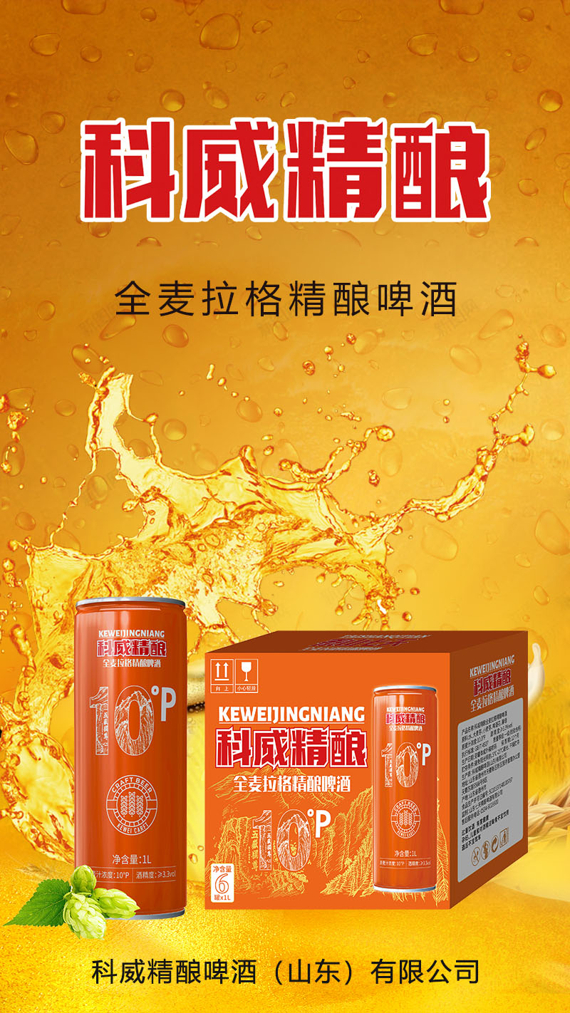 品名:科威精釀全麥拉格精釀啤酒【10°1L×6】