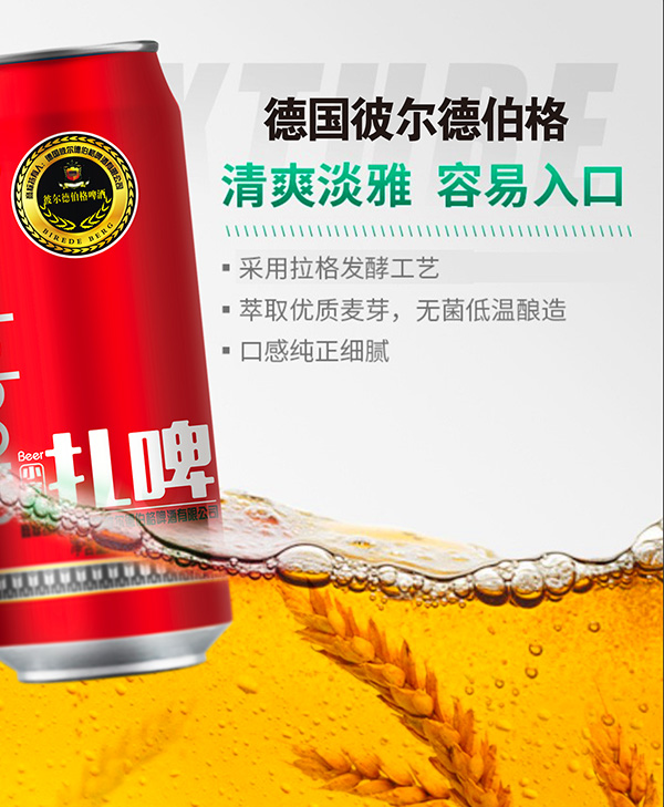 產(chǎn)品特點:清亮晶瑩、酒花香突出,口感純正、自然爽口,泡沫持久掛杯