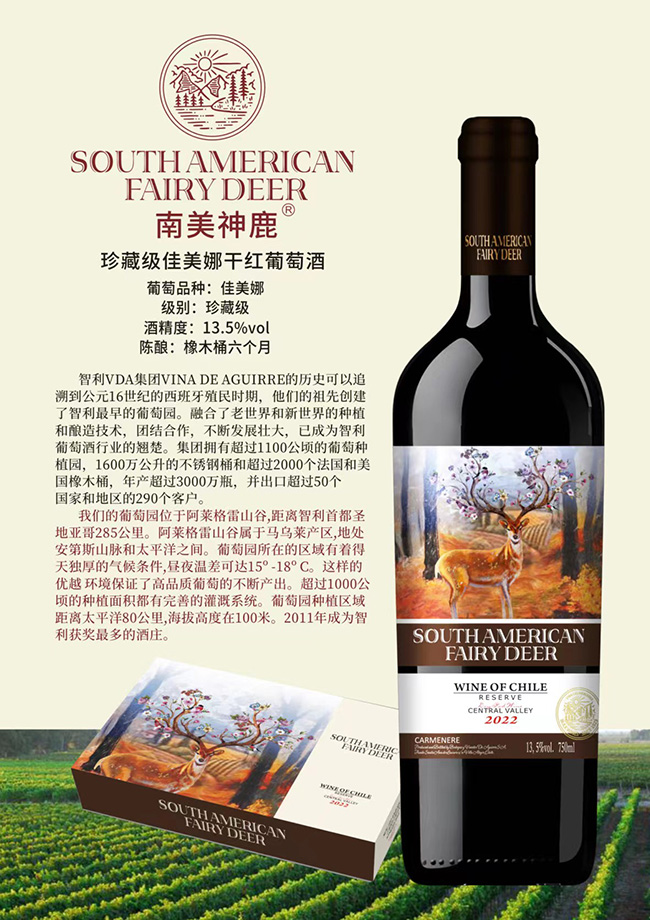 【產(chǎn)品名稱】南美神鹿珍藏級(jí)佳美娜干紅葡萄酒【13.5°750ml】