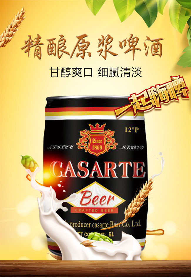 我公司精選優(yōu)級進口麥芽、啤酒花、優(yōu)級大米、上等酵母,采用優(yōu)級純凈水,超低溫長時間發(fā)酵,啤酒風(fēng)味保鮮技術(shù)密閉隔氧,全過程純凈化釀造,使酒液清澈透明,純凈自然,口味清爽,更加適合消費者的消費需求。合理的保持了啤酒的各種營養(yǎng)成分,其色澤金黃透明,泡沫潔白細膩、掛杯持久、純爽柔和、麥香味濃郁。