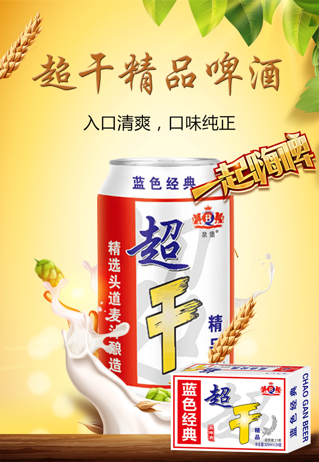 我公司精選優(yōu)級進口麥芽、啤酒花、優(yōu)級大米、上等酵母,采用優(yōu)級純凈水,超低溫長時間發(fā)酵,啤酒風味保鮮技術密閉隔氧,全過程純凈化釀造,使酒液清澈透明,純凈自然,口味清爽,更加適合消費者的消費需求。合理的保持了啤酒的各種營養(yǎng)成分,其色澤金黃透明,泡沫潔白細膩、掛杯持久、純爽柔和、麥香味濃郁。