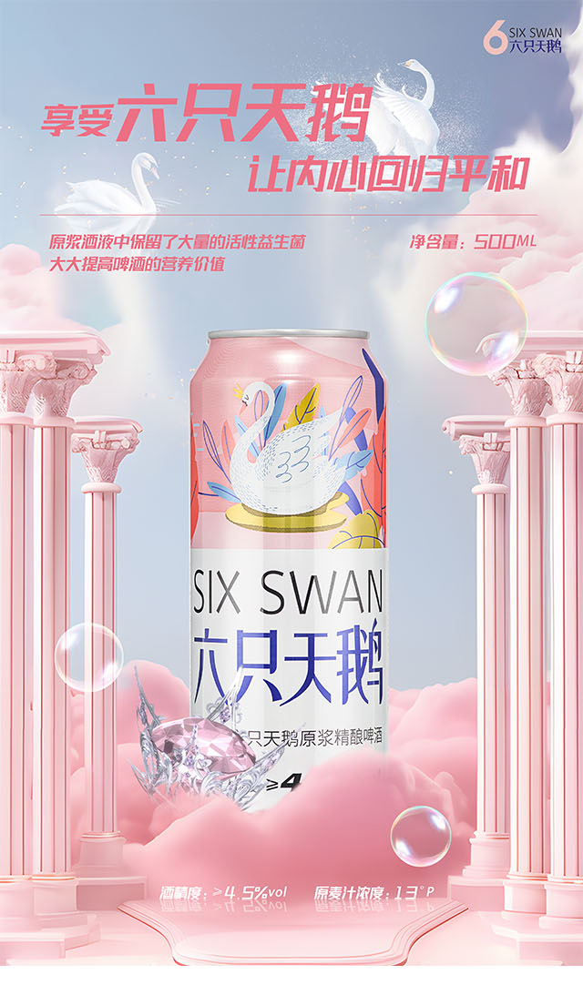 現(xiàn)市場火爆的網(wǎng)紅啤酒“六只天鵝”系列就是公司的自主品牌之一,它結合了消費品市場對于產品規(guī)格差異化,順應當下年輕人的生活松弛感及情緒的市場潮流需求,以高性價比與特別口感深受年輕人青睞。