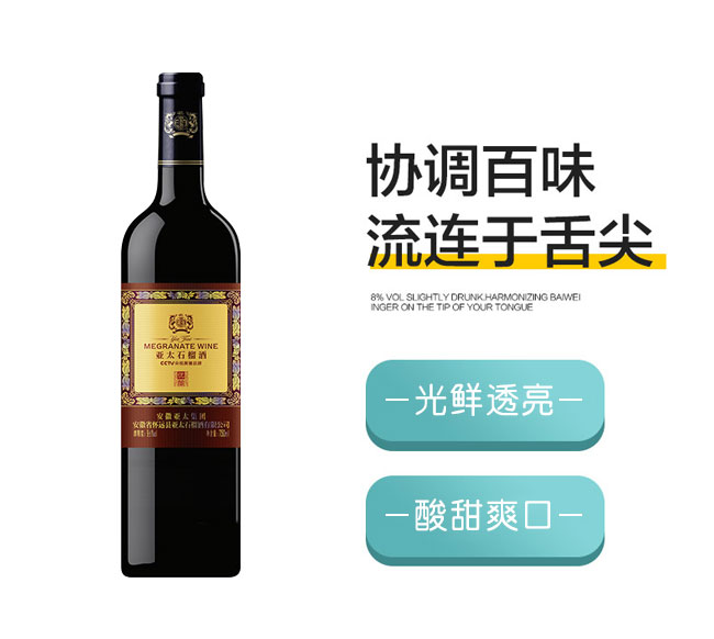 公司選擇名優(yōu)石榴,經(jīng)榨汁發(fā)酵,精心釀制而成。