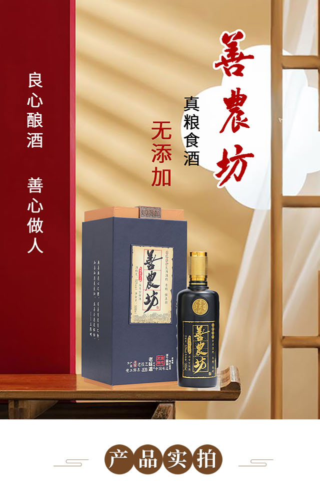 做中國(guó)酒界忠誠(chéng)的傳承者,堅(jiān)守老傳統(tǒng),堅(jiān)持純糧釀造,為凈化中國(guó)白酒市場(chǎng)盡自己微薄之力,言行一致!吧妻r(nóng)坊”酒每一瓶都是天然、健康的“純糧固態(tài)發(fā)酵” 糧食酒。作為敢承諾地道糧食酒,以“純糧釀造、拒絕酒精勾兌”為善農(nóng)坊品牌使命,力爭(zhēng)做白酒行業(yè)的典范。