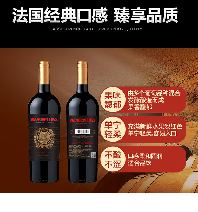 【產(chǎn)品名稱】法國(guó)柏翠莊大師干紅葡萄酒2017(黑標(biāo))【13° 750ml】