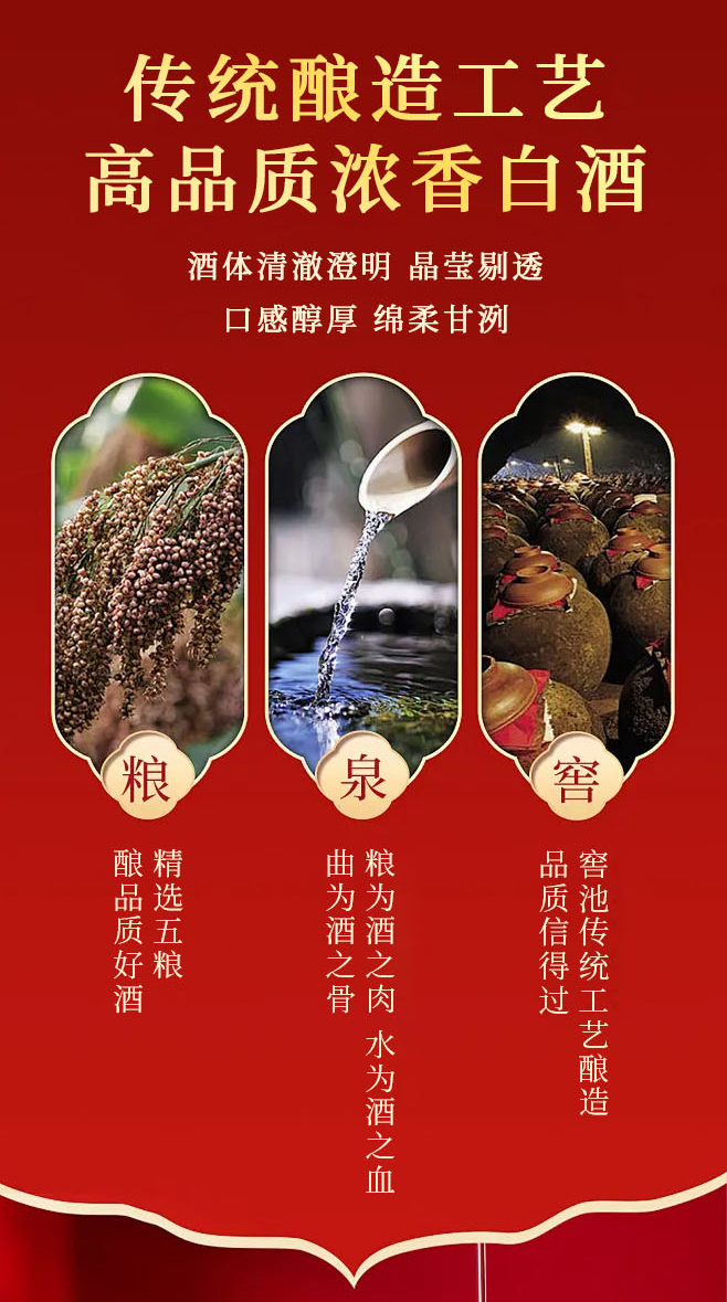 適飲場(chǎng)合:商務(wù)宴會(huì)、團(tuán)圓小酌、婚慶宴席、節(jié)日送禮、收藏
