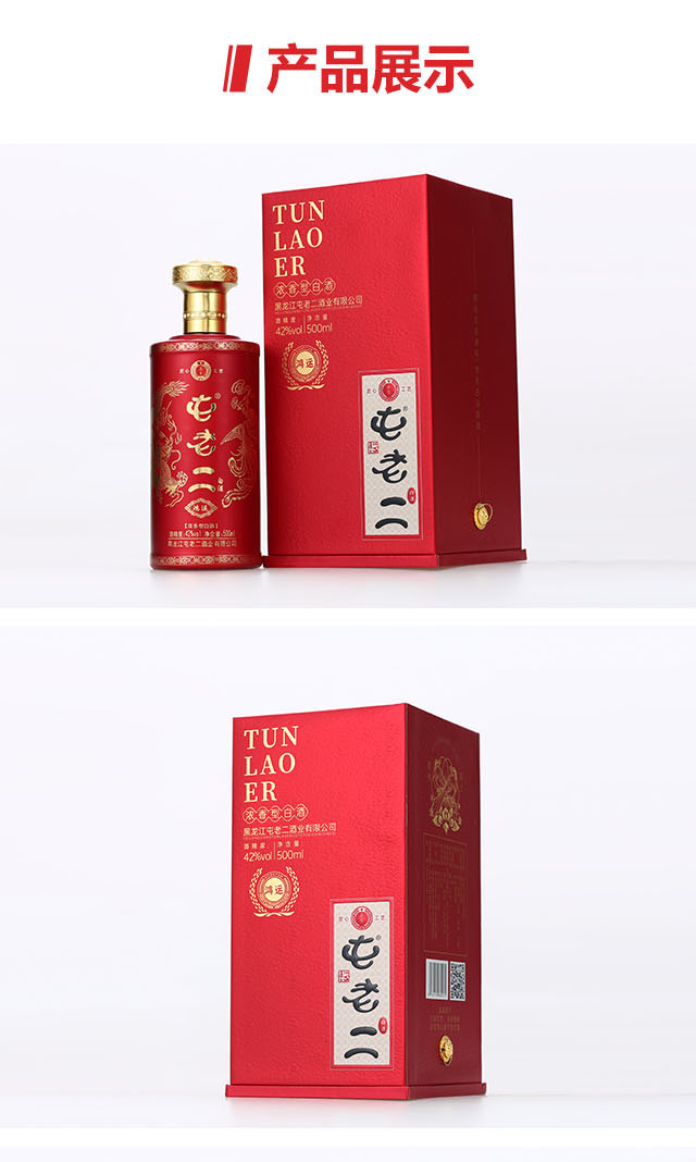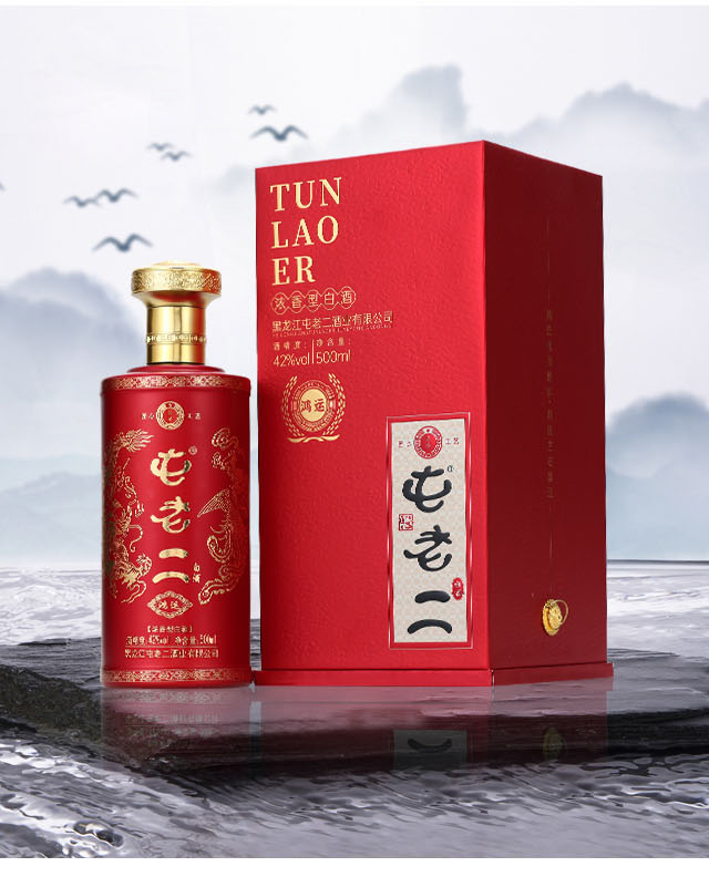 “屯老二”酒屬于濃香型白酒,但又有著優(yōu)于其他濃香型白酒的特別之處;選取嫩江流域優(yōu)質(zhì)的深層地下水及東北糯紅高粱為主要原料,古法釀造;優(yōu)選四川榮縣陶壇,成酒灌裝入壇后密封壇口,讓酒品在壇內(nèi)自然老熟。出品酒體醇厚、綿柔、幽香、味正,形成獨特糧酒香氣。飲后不頭疼、不口干、醒酒快、體感舒適。