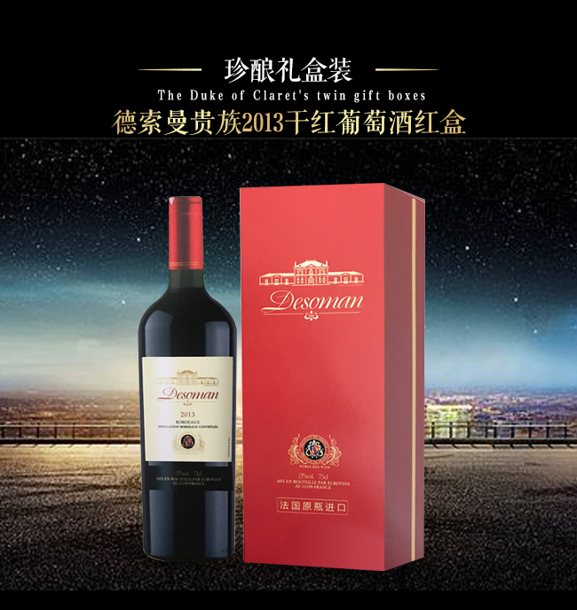【產(chǎn)品名稱】貴族2013干紅葡萄酒紅盒