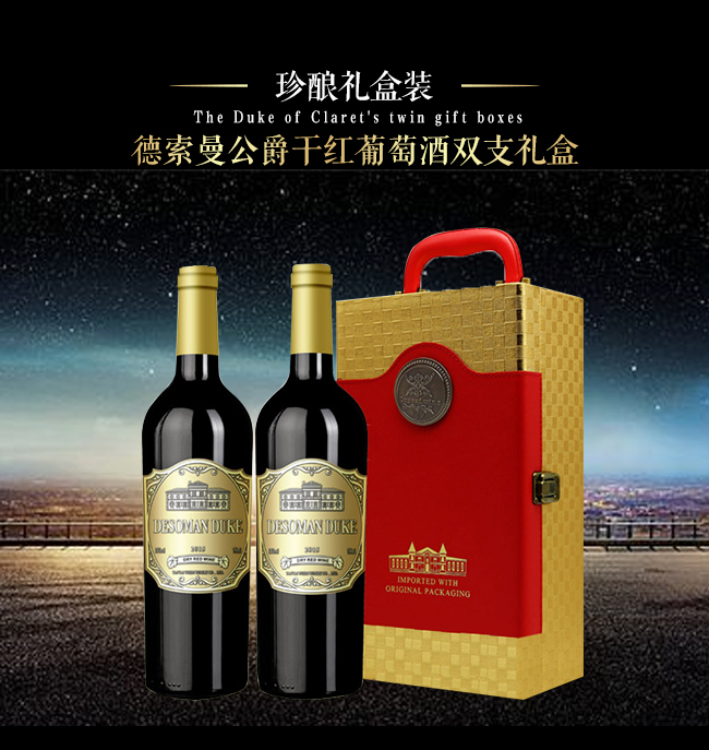 公爵干紅葡萄酒雙支禮盒|上海莫朗國際貿(mào)易有限公司-火爆好酒招商網(wǎng)【9998.TV】