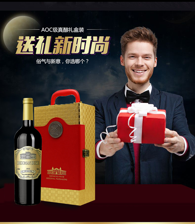 【產(chǎn)品名稱】公爵干紅葡萄酒雙支禮盒