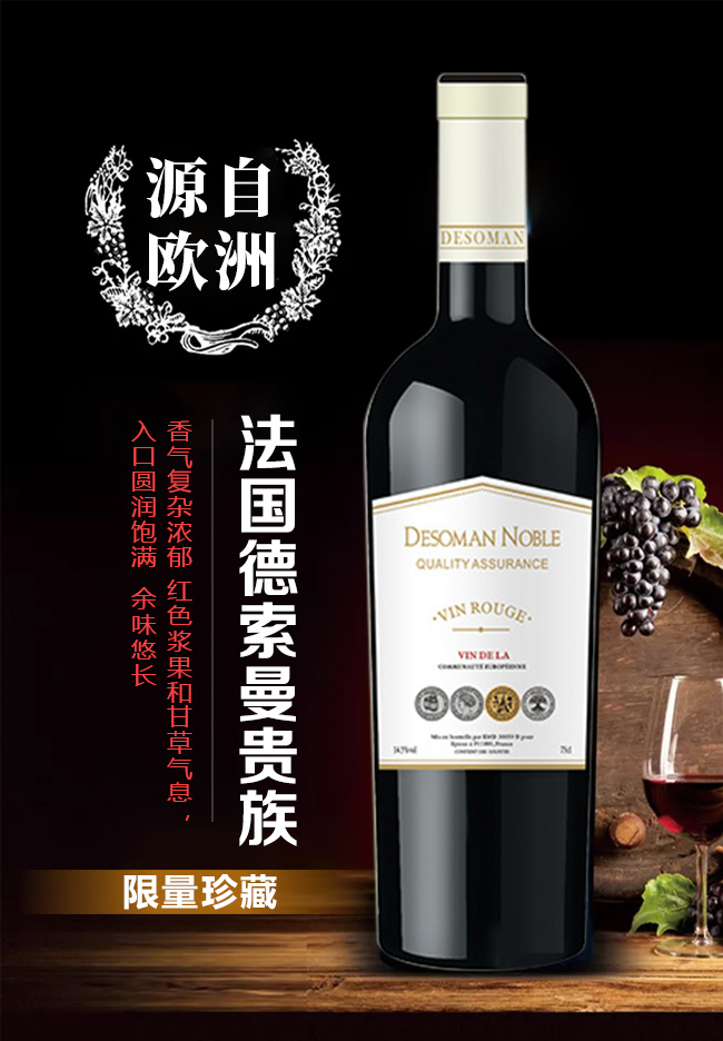 產(chǎn)品名:法國德索曼貴族干紅葡萄酒【 14.5度750ml】