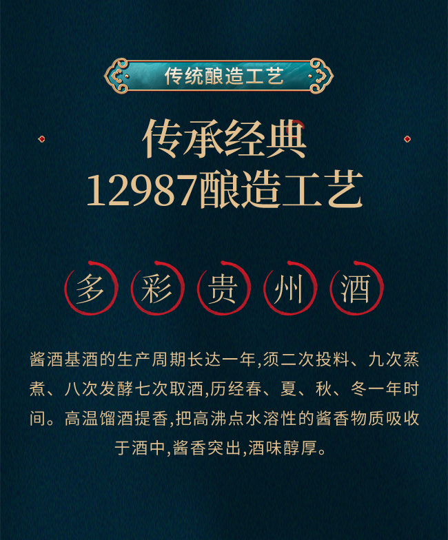國民醬香好酒,香飄大地神州。古珍酒業(yè)沿襲赤水河傳承千年的純糧釀造工藝,集天地人和醞釀之精華,融入多彩貴州五色秀多彩文化理念,為大眾消費者開發(fā)物美價廉的醬香好酒,在多彩貴州酒集團公司的帶動下,以貴州白酒產(chǎn)業(yè)健康可持續(xù)發(fā)展為己任,為共同推動貴州赤水河流域建成世界醬香型白酒產(chǎn)業(yè)核心區(qū)砥礪奮進(jìn)。