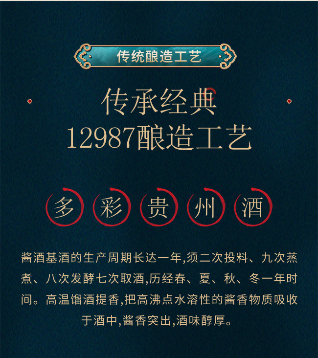 國民醬香好酒,香飄大地神州。古珍酒業(yè)沿襲赤水河傳承千年的純糧釀造工藝,集天地人和醞釀之精華,融入多彩貴州五色秀多彩文化理念,為大眾消費者開發(fā)物美價廉的醬香好酒,在多彩貴州酒集團公司的帶動下,以貴州白酒產(chǎn)業(yè)健康可持續(xù)發(fā)展為己任,為共同推動貴州赤水河流域建成世界醬香型白酒產(chǎn)業(yè)核心區(qū)砥礪奮進。