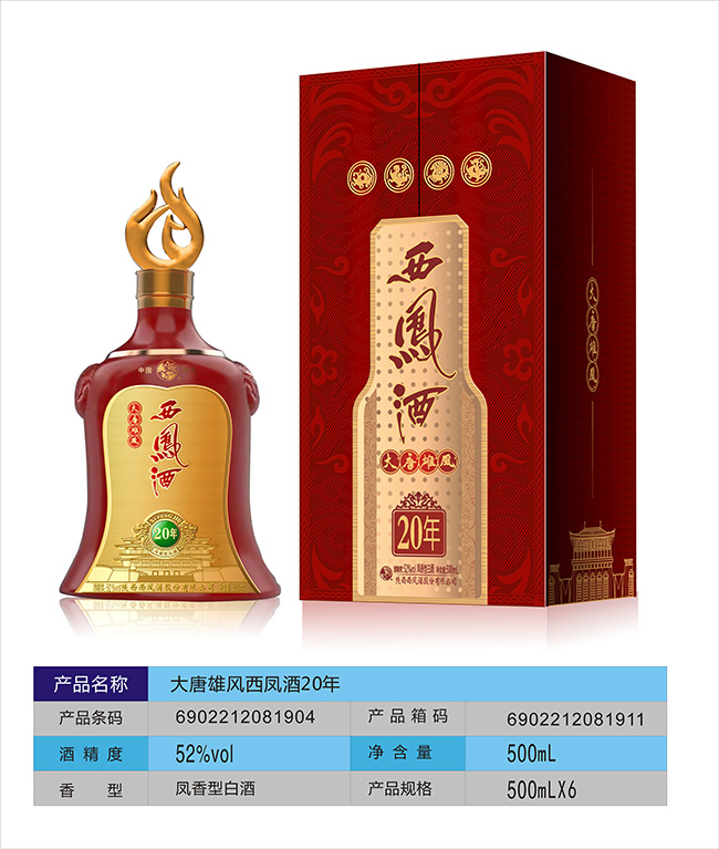 產(chǎn)品名:西鳳酒大唐雄風二十年 鳳香型【52°500ml】