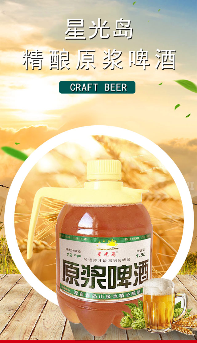 產(chǎn)品名稱:星光島原漿啤酒【12°1.5L】
